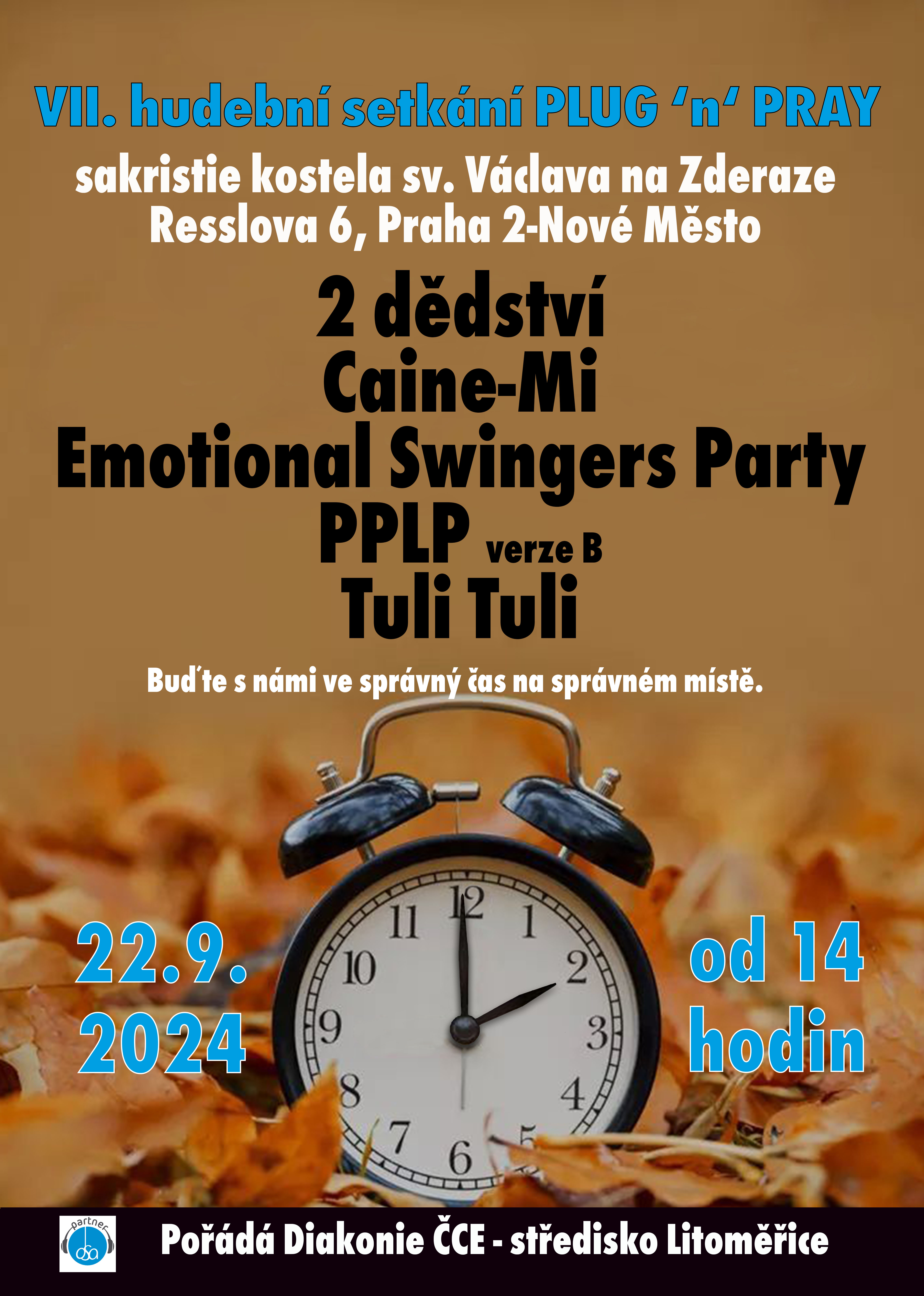V neděli 22. září 2024 od 14.00 do cca 18.00 proběhne sedmý ročník setkání Plug 'n' Pray. Sakristie kostela sv. Václava na Zderaze (Resslova 6, Praha 2 - Nové Město).