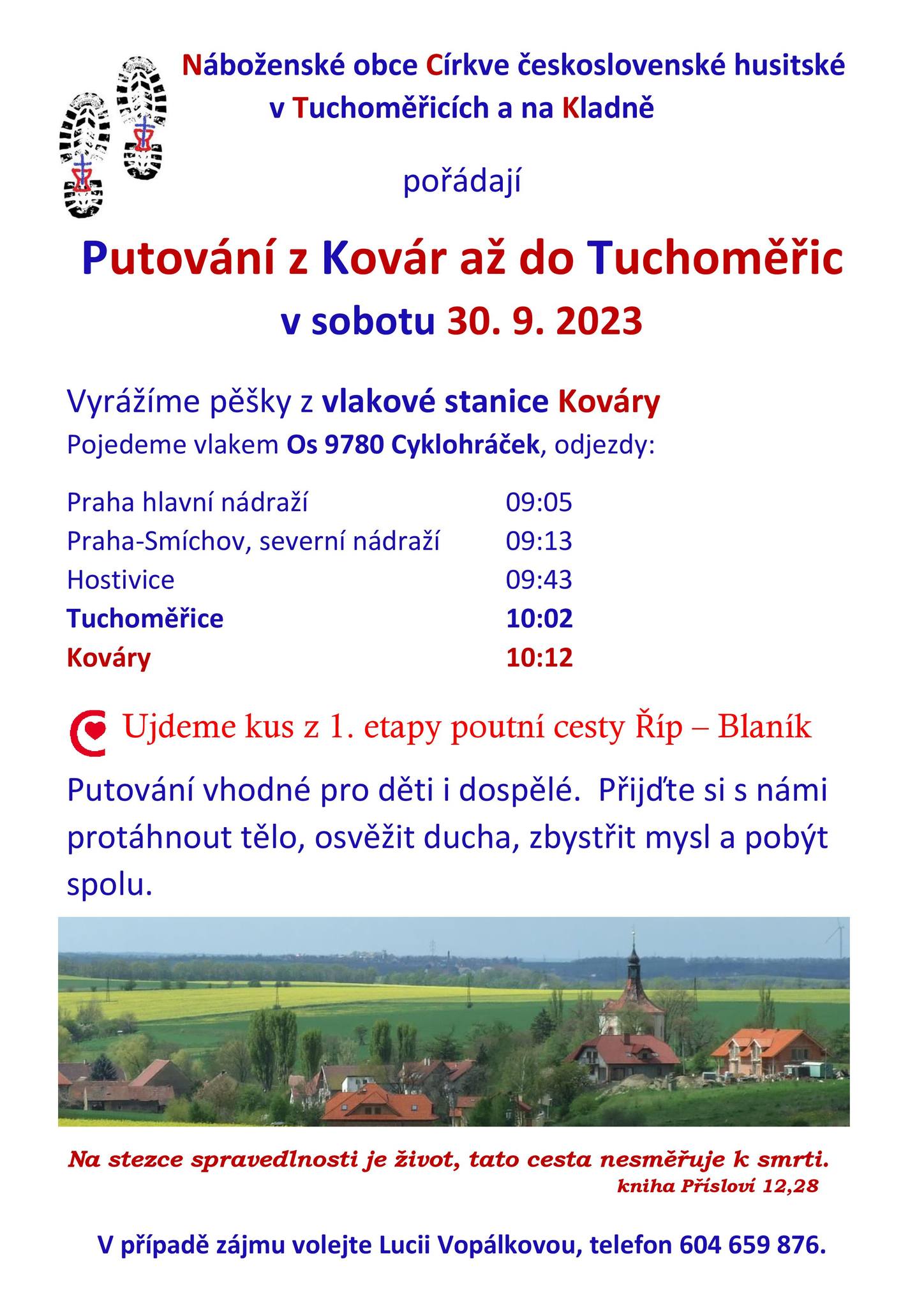 Putování po poutní cestě Říp - Blaník (1. etapa). Informace Lucie Vopálková 604 659 876. Vhodné i pro děti.