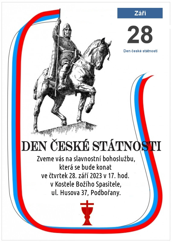 Slavnostní bohoslužbu ke Dni české státnosti, na "svatého Václava", ve čtvrtek 28. září 2023 v 17.00 v Kostele Božího Spasitele, ul. Husova 37, Podbořany.