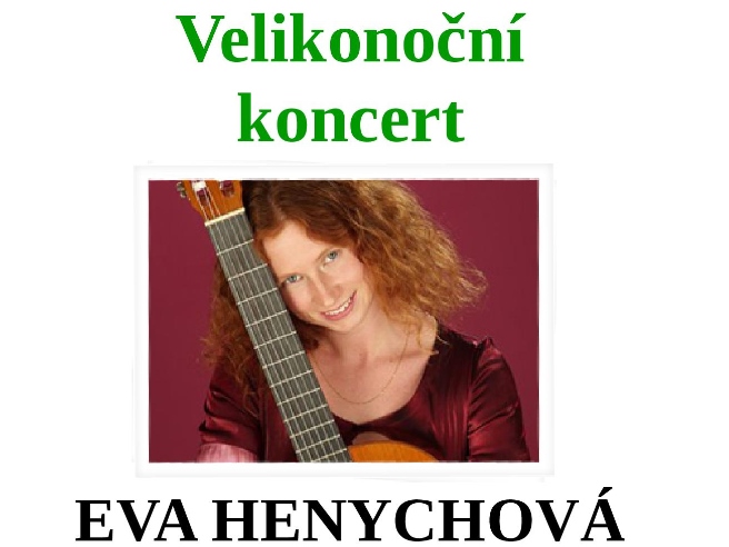 Srdečně Vás zveme na Velikonoční koncert Evy Henychové, zpěvačky, kytaristky, skladatelky a textařky, charismatické osobnosti, která dokáže zasáhnout srdce lidí všech generací. Koncert se koná v neděli 16. dubna 2023 od 18:00 v Husově sboru, Karkulínova 8, Brno - Tuřany. Prosíme Vás o dobrovolné vstupné 100Kč.