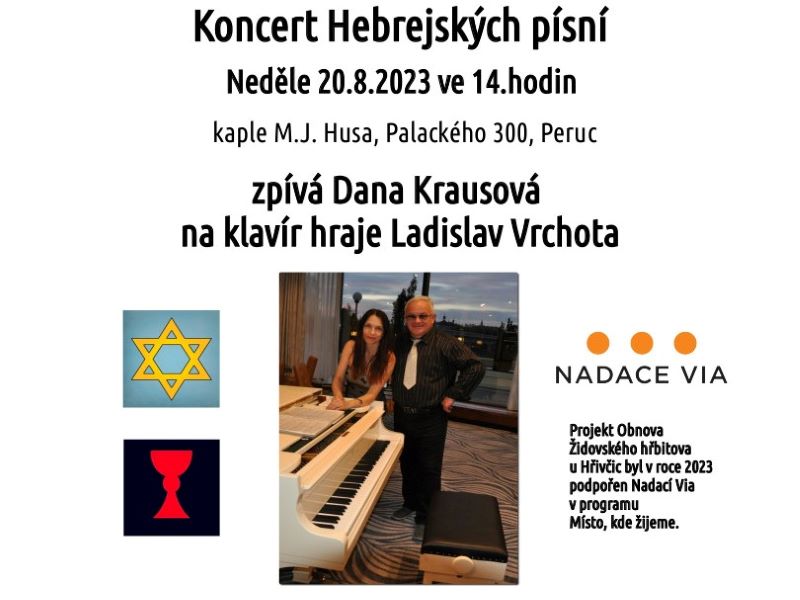 Pozvánka na koncert Hebrejských písní, pořádá Husův sbor Peruc