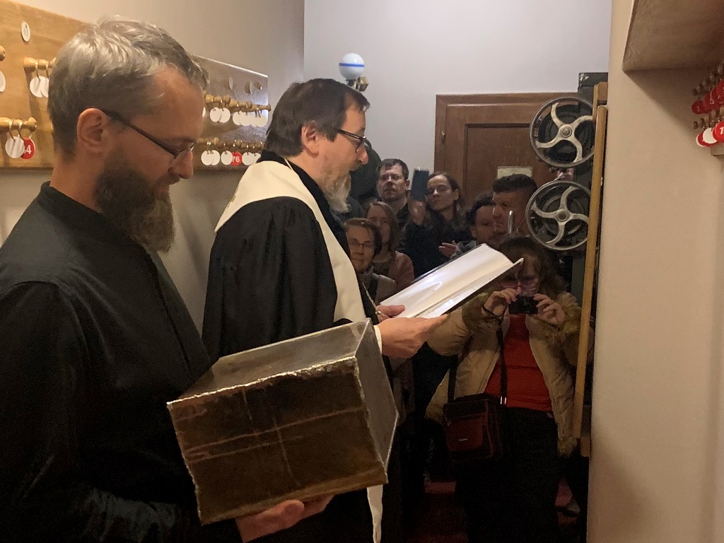 Vkládáme nyní kazetu do úložného kamene v návaznosti na naše předky víry a činíme tak s modlitbou: