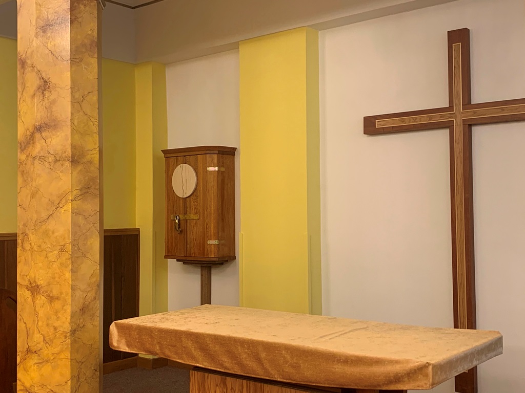 dnes bude předána a otevřena nová sakrální skříňka. Doplňuje tak bohoslužebný stůl s křížem a kazatelnou. Děkujeme těm, kteří ji svoji dovedností zhotovili, ale i bratru faráři Lukášovi, který ji navrhnul.